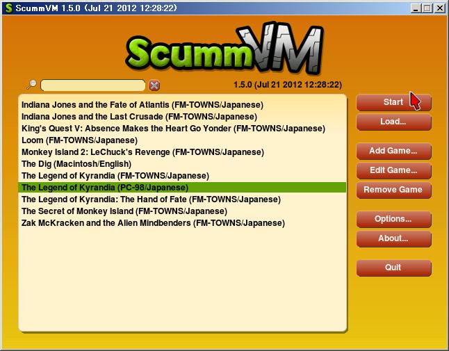 FM-TOWNSのThe Legend of KyrandiaはPC98用もScummVMに追加できます。